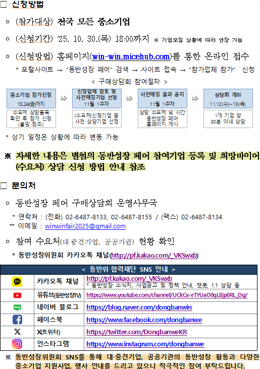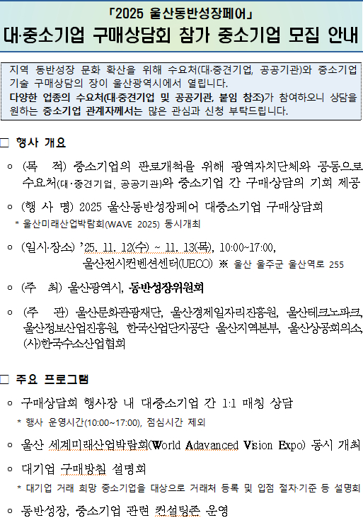 | ‒ | [동반성장위원회] 2025년 대·중소기업 구매상담회 참가 중소기업 모집 안내 |