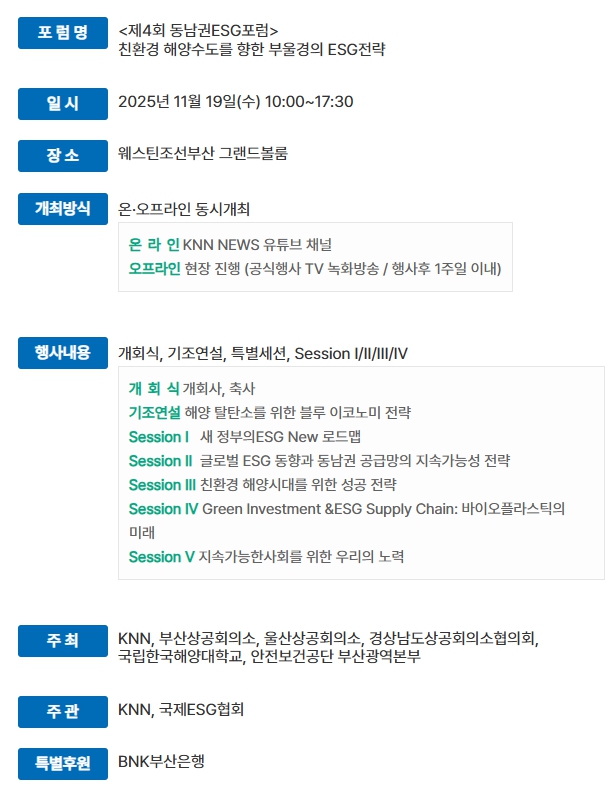 | ‒ | (KNN) 동남권 ESG포럼 참가 안내 |