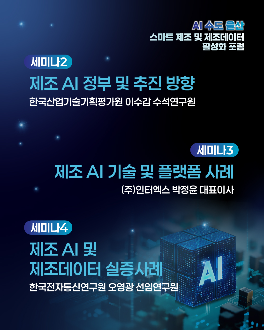 | 제목 | [울산테크노파크] AI 수도 울산 스마트 제조 및 제조데이터 활성화 포럼 | ||