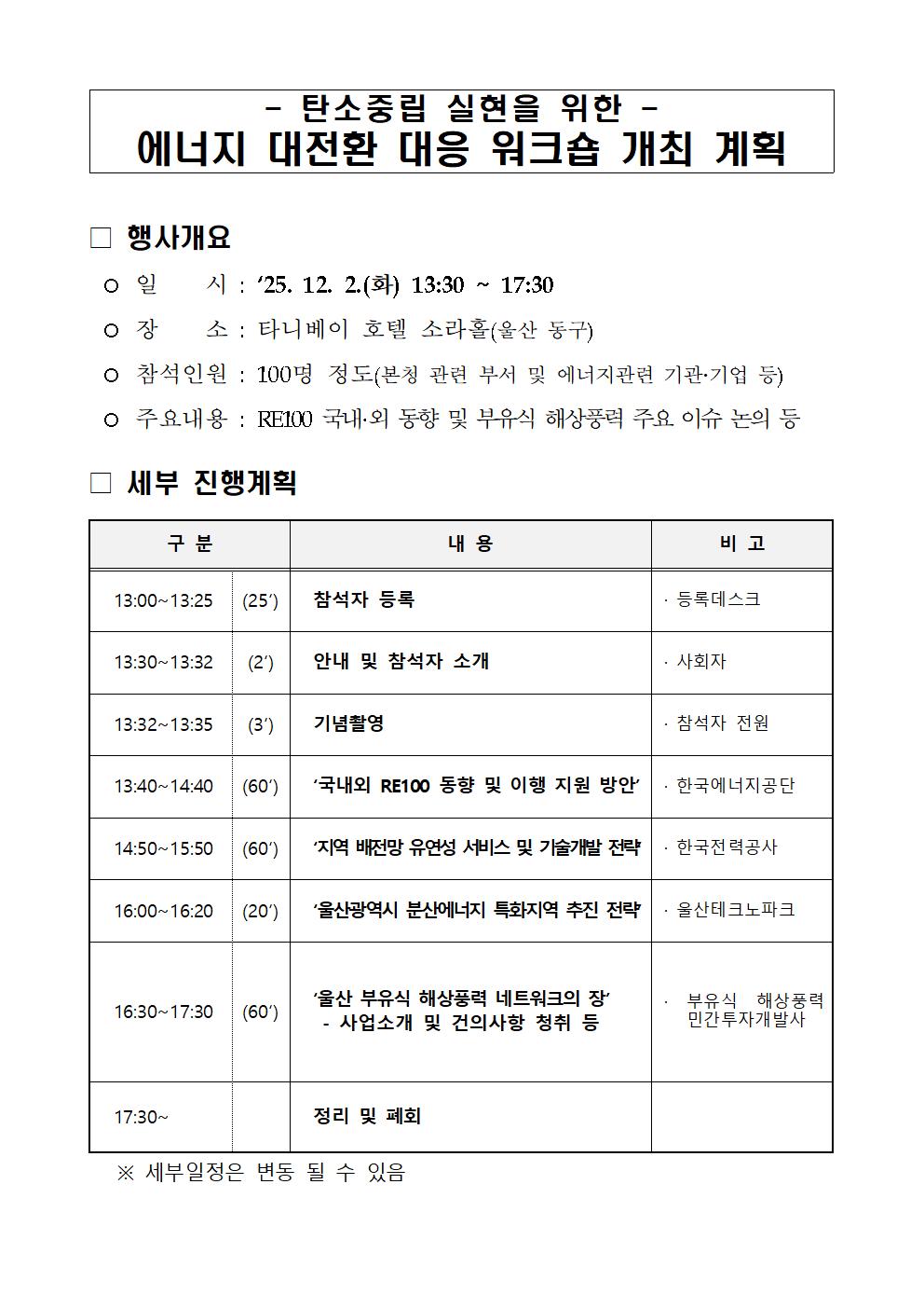 | ‒ | [울산광역시] 에너지 대전환 대응 워크숍 개최 안내 |