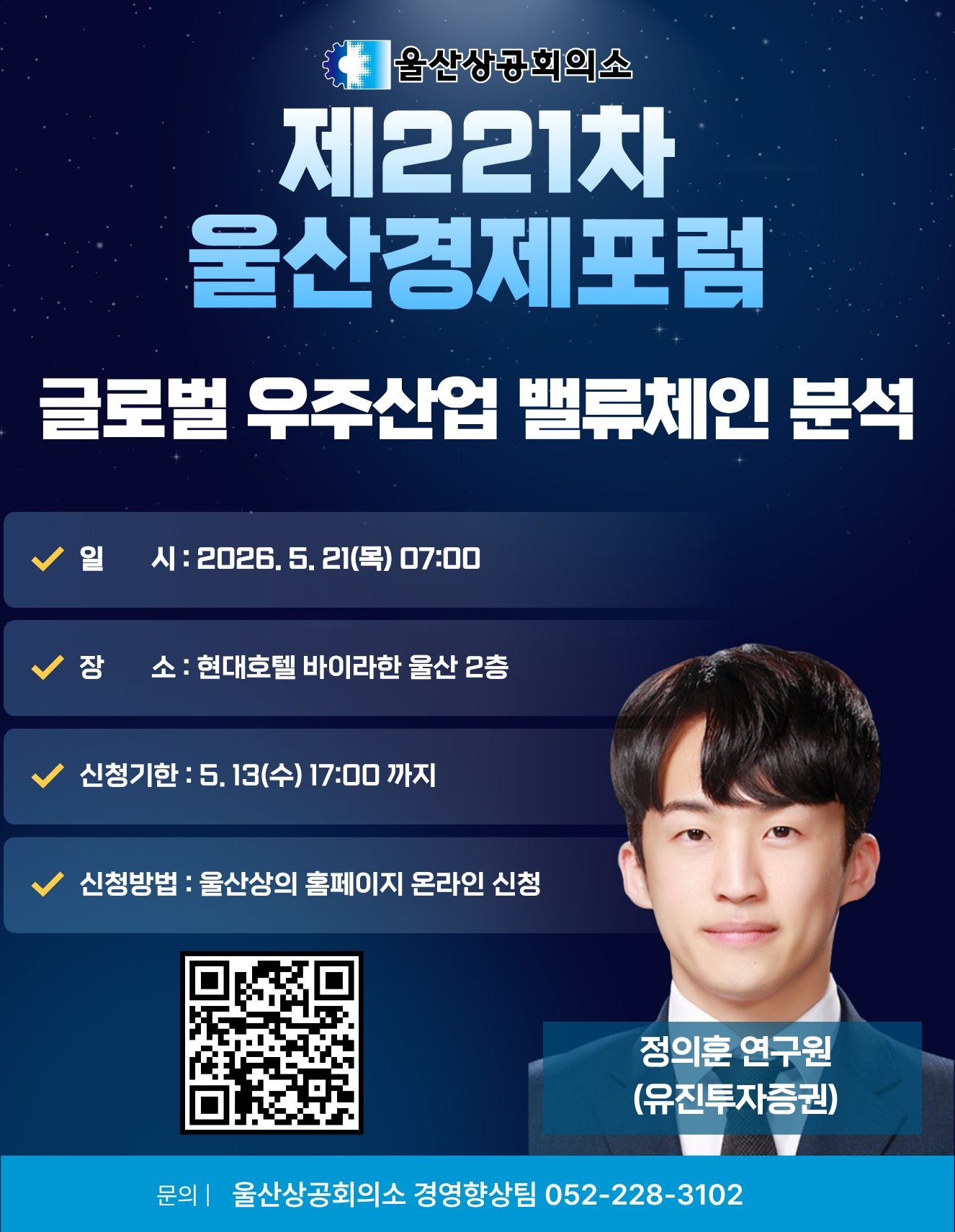 | ‒ | 제221차 울산경제포럼 '글로벌 우주산업 밸류체인 분석` |
