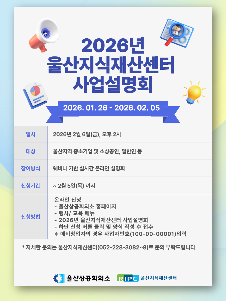 | 제목 | 2026년 울산지식재산센터 지원사업 온라인 설명회 | ||